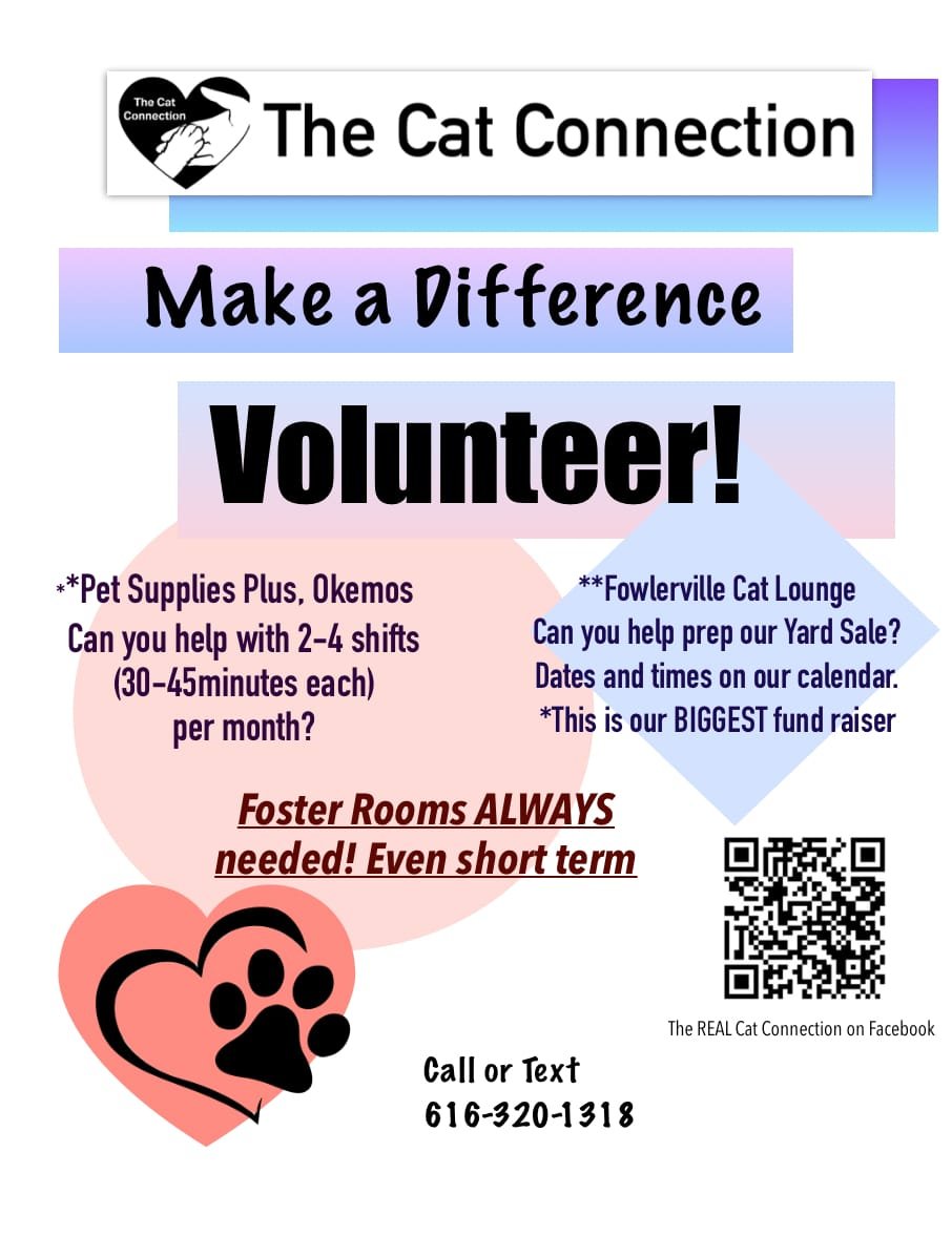 **Please note that this is a REQUEST for the application(s). One of our volunteers will get in touch as soon as we can to discuss the actual application and process. Please remember that this is a COMPLETELY volunteer organization so no one is “staffing the office.” We’ll try to respond within a day or two but we’re the same people running cats to the vet, fostering, and keeping up the cat lounge, while working and supporting our families, too. We’re SO GLAD you’re interested in helping! THANK YOU!